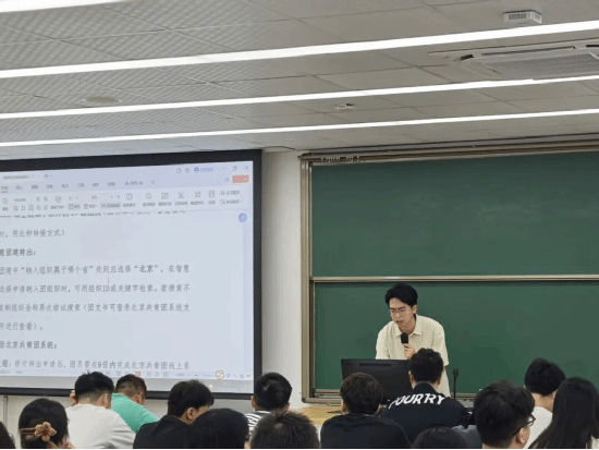 李林凤老师围绕公费医疗、奖学金评选、入党流程为大家进行了细致深入的讲解。陈鹏翰老师结合相关文件向新生明确了入团要求及入团流程,并就团组织关系转接等问题进行详细解答。