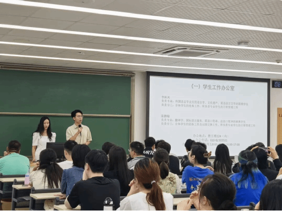 会议伊始,两位老师对新生的到来表示热烈的欢迎,并分别介绍了各自负责的工作及学院各办公室分工,以便同学们尽快熟悉新环境。