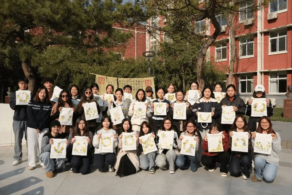 随着一件件充满春意的作品完成,本次“春分·植物拓染”活动也在欢声笑语中圆满结束。大家手持自己的创意成果合影留念,把春天的色彩与温度一起带回了校园生活之中 。